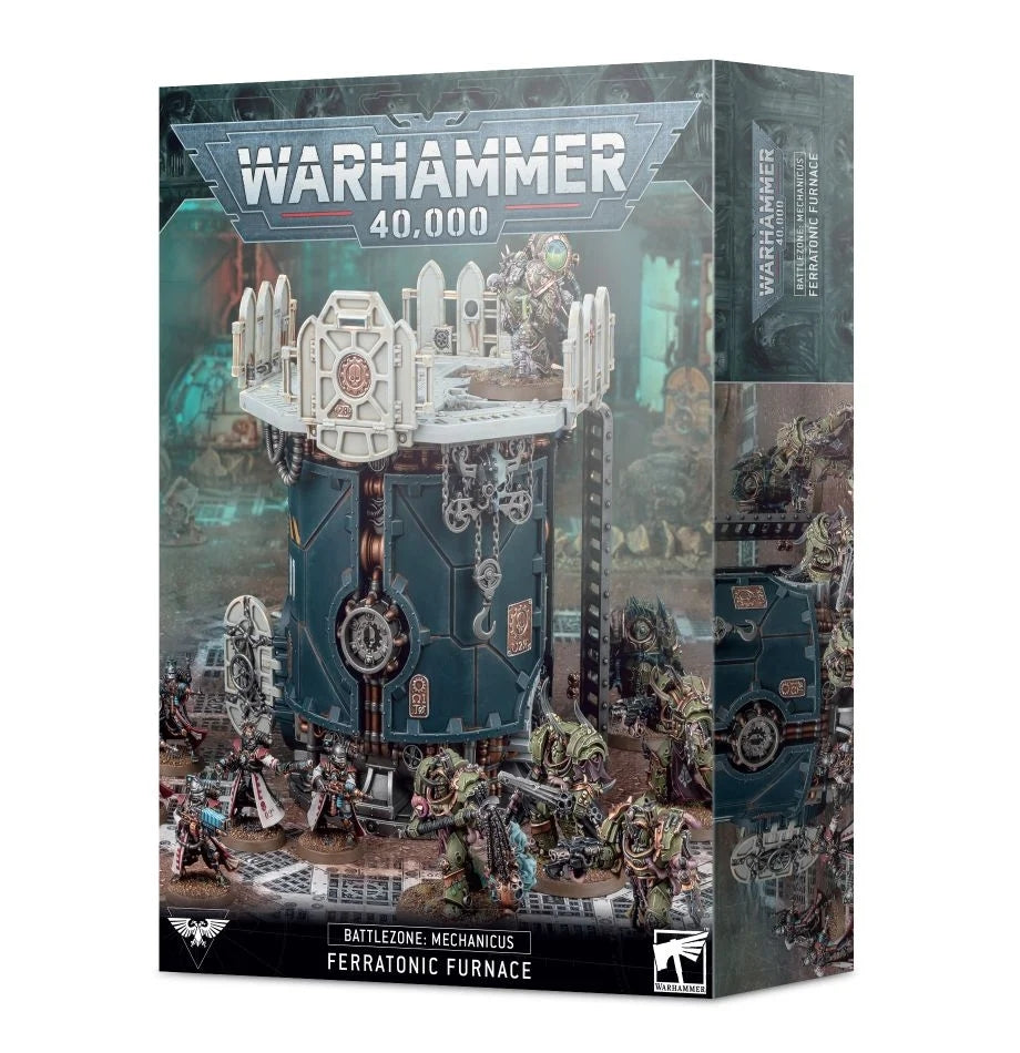 The kit is comprised of 26 plastic components, with which you can assemble one Ferratonic Furnace. Rules for this scenery can be found in the Battlezone: Mechanicum – Terrain Datasheet Cards pack.