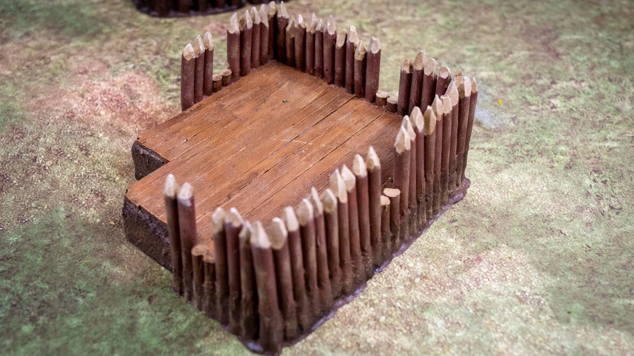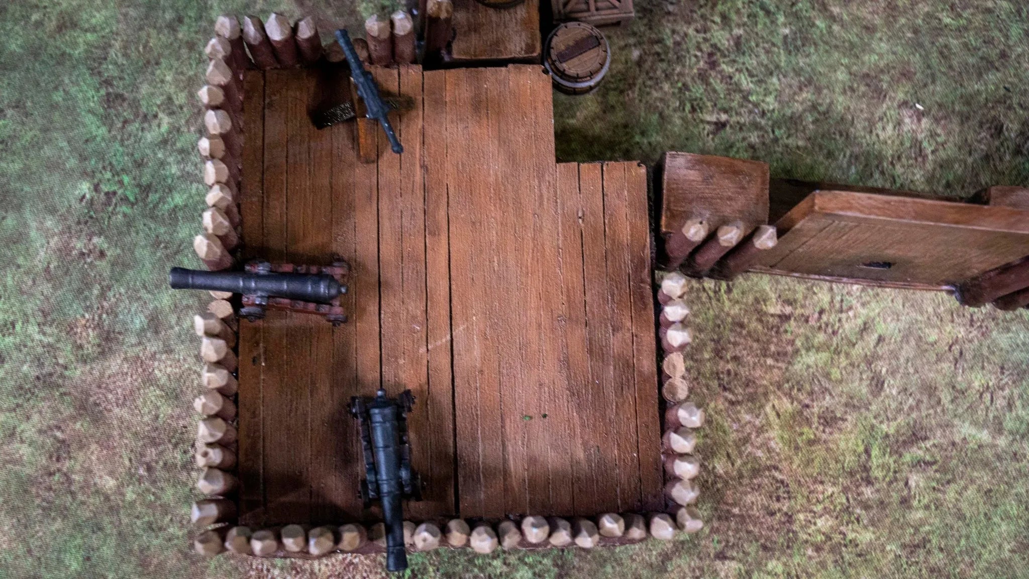 Usually built in a square or diamond shape, bastions were often placed at the corners of a fortified enclosure. With embrasures facing both outward and parallel to the walls, cannons could be mounted to set up deadly crossfire on any approaching forces. This Bastion model can be used stand alone or can replace one or more corner sections of our Palisade Fort to create a stronger fortification for your forces.