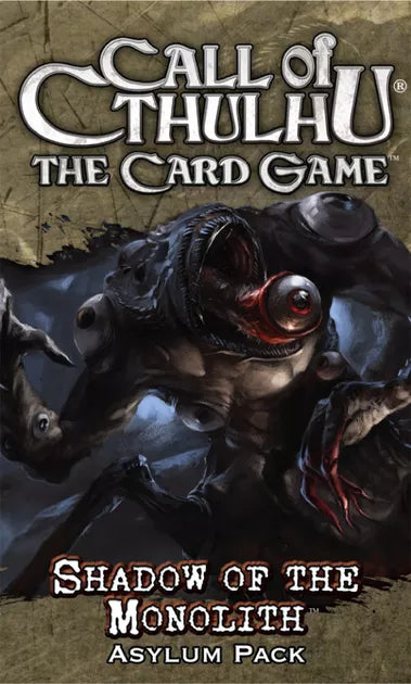 The sixth and final Asylum Pack in the "Ancient Relics" cycle for Call of Cthulhu: The Card Game, Shadow of the Monolith continues the cycle's development of the exciting new Relic trait and concludes the cycle's exploration of the Ancient Ones' global reach. Sixty new cards (three copies each of 20 different cards) take the game's different factions to the South Pacific, where they are greeted by malevolent cultists and their dark spells. Who will prosper when the region's Relics are unearthed? Who will fall mad or die along the way? Shadow of the Monolith removes the final veils of the Ancient Relics cycle of Asylum Packs,
