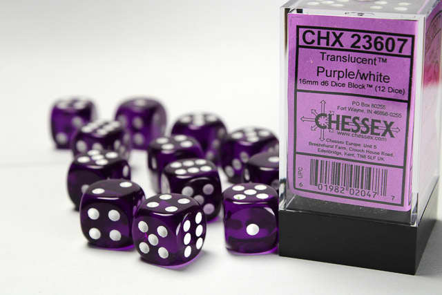Chessex: Translucent - 16mm D6 Purple/White (12)