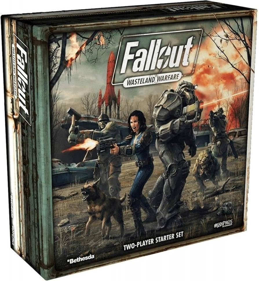 The Two-Player Starter Set contains everything you need to play Fallout: Wasteland Warfare. Please note that the miniatures included are unpainted pre-assembled multi-part PVC.