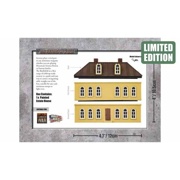 Scenery plays a vital part in any miniature wargame whether you are playing Historical, Science Fiction or Fantasy battles. The Battlefield in a Box range of tabletop-ready scenery is a quick and easy way to create a wargaming table straight out of the box, suitable for any scale miniature troops to fight over. Contains: 1x Painted Estate House