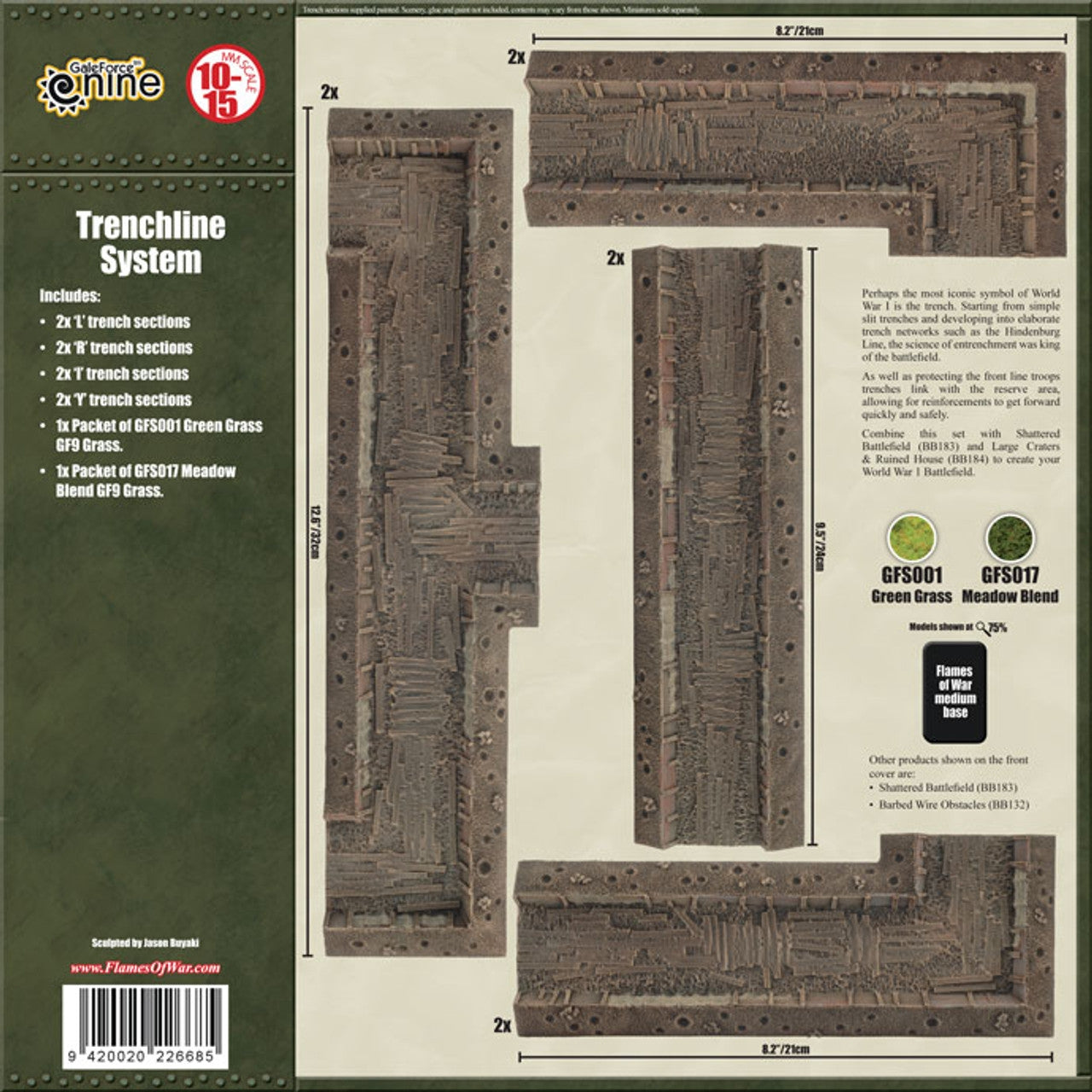 Perhaps the most iconic symbol of World War I is the trench. Starting from simple slit trenches and developing into elaborate trench networks such as the Hindenburg Line, the science of entrenchment was king of the battlefield. Contains a 4’/120cm Pre-painted Trenchline System.