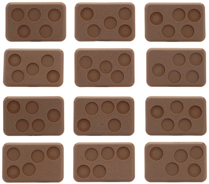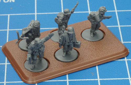 There are there standard base sizes in Flames Of War; small measuring 1¼”/32mm wide by 1”/25mm deep, medium measuring 2”/50mm wide by 1¼”/32mm deep and large 2”/50mm wide by 2½”/65mm deep.