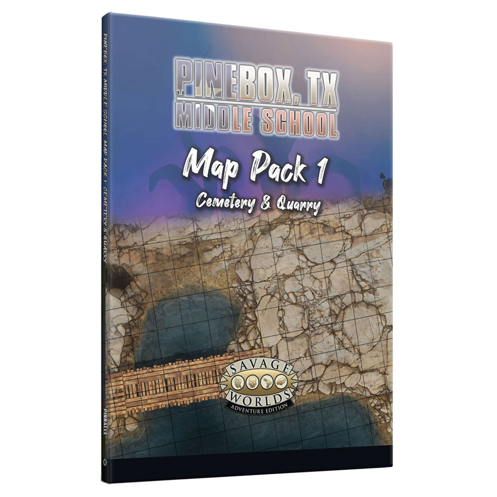 A large, 30" x 24" double-sided laminated map for use with miniatures or our Pinebox Middle School Pawns. They are marked with a light one inch grid, perfect for Savage Worlds. These heavy stock, dry and wet erase combat maps feature some of the most useful locations for your campaign! Pack 1 features Wilson Quarry and a Graveyard, perfect for any modern games.