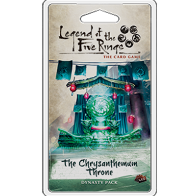 Experience the wonders of the Imperial Cycle with The Chrysanthemum Throne, the fourth Dynasty Pack for Legend of the Five Rings: The Card Game. Each of the seven Great Clans receives new cards that continue to embrace and define the themes that began in the Legend of the Five Rings: The Card Game Core Set. Along the way, you'll find a great assortment of cards focused on the Imperial City of Otosan Uchi. From neutral samurai sworn to the Imperial family, to Imperial magistrates from each of the Great Clans, to rewards for holding the Imperial Favor, this cycle draws you into the world of Otosan Uchi and the service of the Emperor.The Dynasty Packs of the Imperial Cycle will be released over an accelerated release schedule of six weeks—one pack each week.