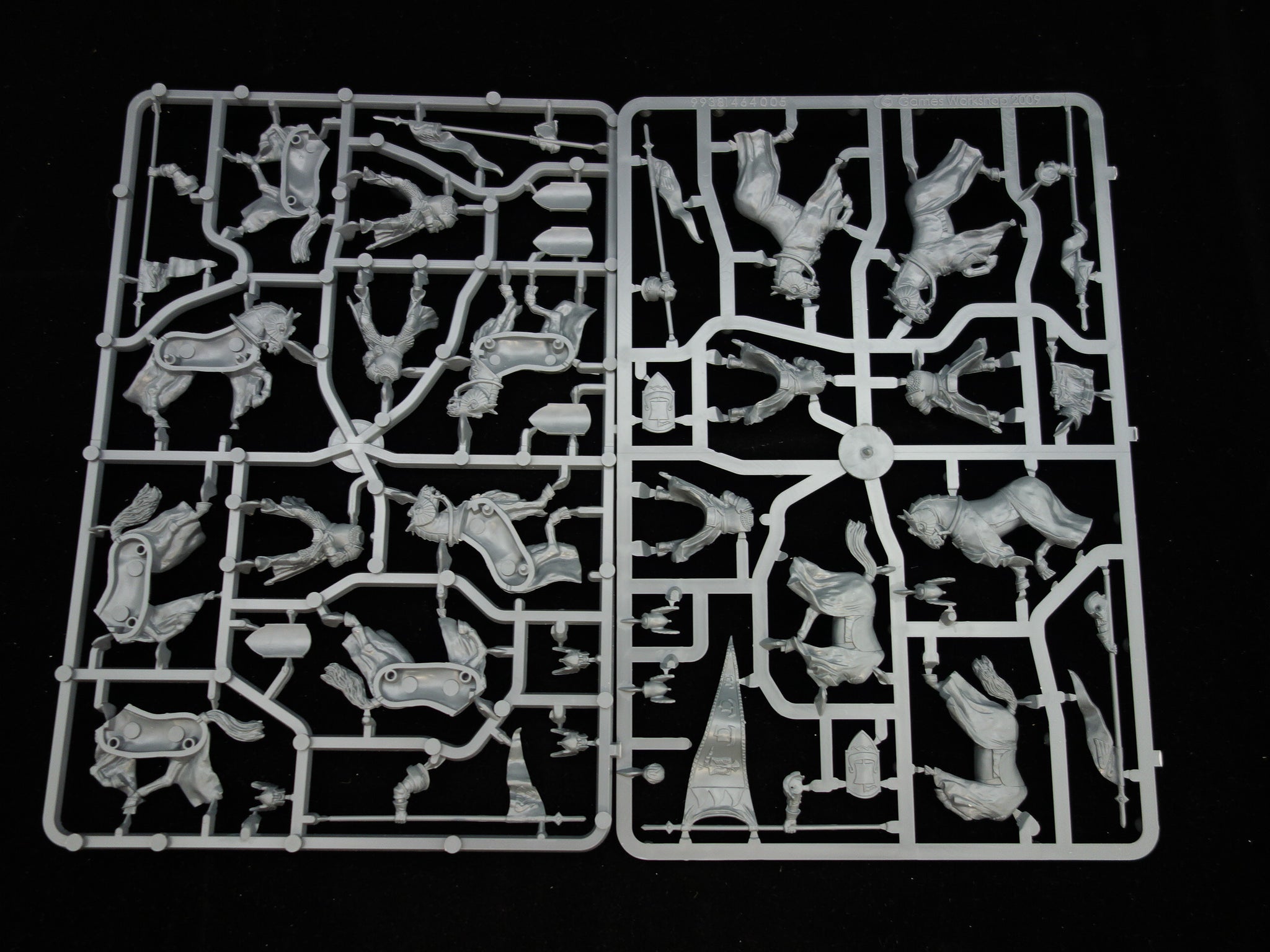 This box set contains six plastic Knights of Dol Amroth. This 39-piece set includes: five different head designs, five variations of lance arm, three designs of shield, three variations of horse, a banner with sculpted detailing and a trumpet arm. Models supplied with 40mm round bases.
