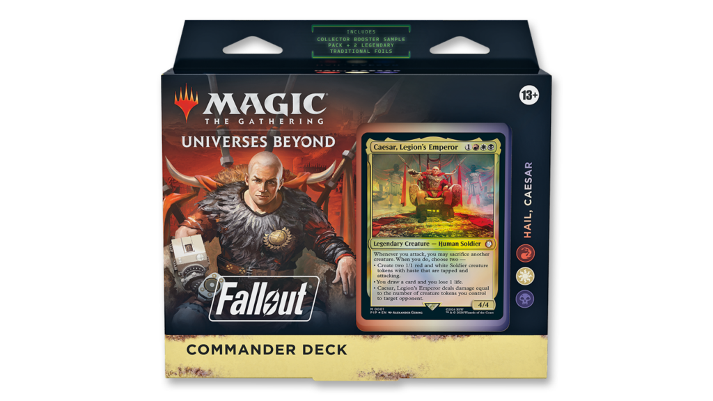 COLLECT SPECIAL FALLOUT CARD TREATMENTS—Each deck comes with a Collector Booster Sample pack containing 2 special alt-frame cards, including 1 Rare or Mythic Rare card