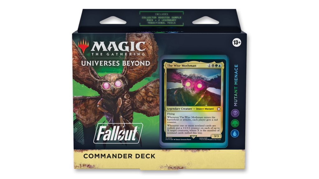 COLLECT SPECIAL FALLOUT CARD TREATMENTS—Each deck comes with a Collector Booster Sample pack containing 2 special alt-frame cards, including 1 Rare or Mythic Rare card