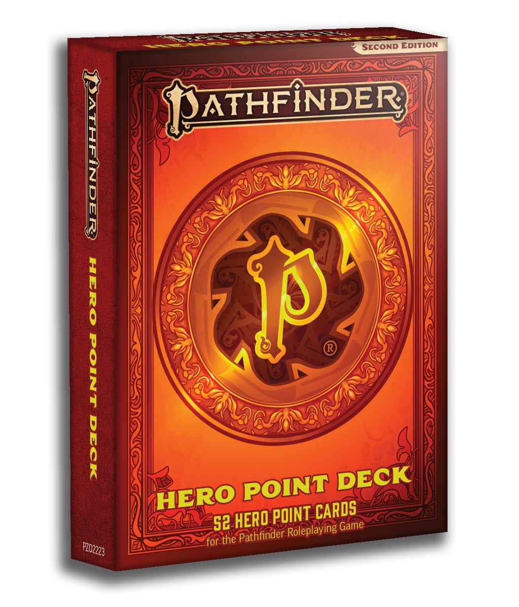 Hero Points help you shape your character's heroic deeds, and this deck of 52 Hero Point cards gives you brand-new ways to guide your hero's path toward greatness! These beautiful, full-color cards let you easily track your Hero Points at the table, and each card offers a different special benefit when you spend that Hero Point. Every effect is compatible with the Second Edition of the Pathfinder Roleplaying Game, giving you even more ways to turn your hero into a legend!