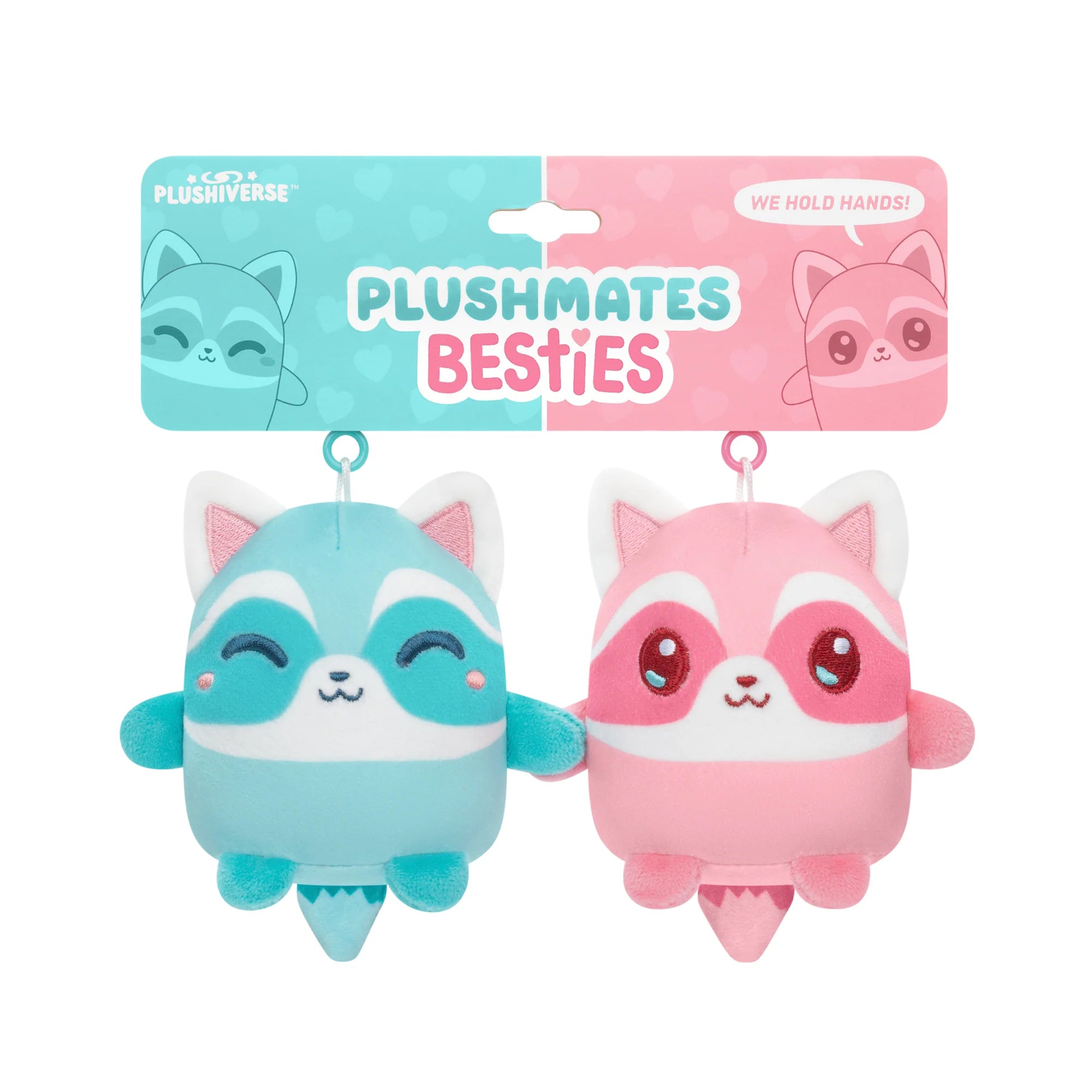 Plushmates Besties are adorable plushie keychains that hold hands! Each plushie has magnetic hands that let them stick together, as well as a plastic keychain that lets you clip them onto your bag, keys, or purse. Whether used as keychains or bag charms, these on-the-go companions are sure to add some cuteness to your day! Give one to your bestie, and keep one for yourself.