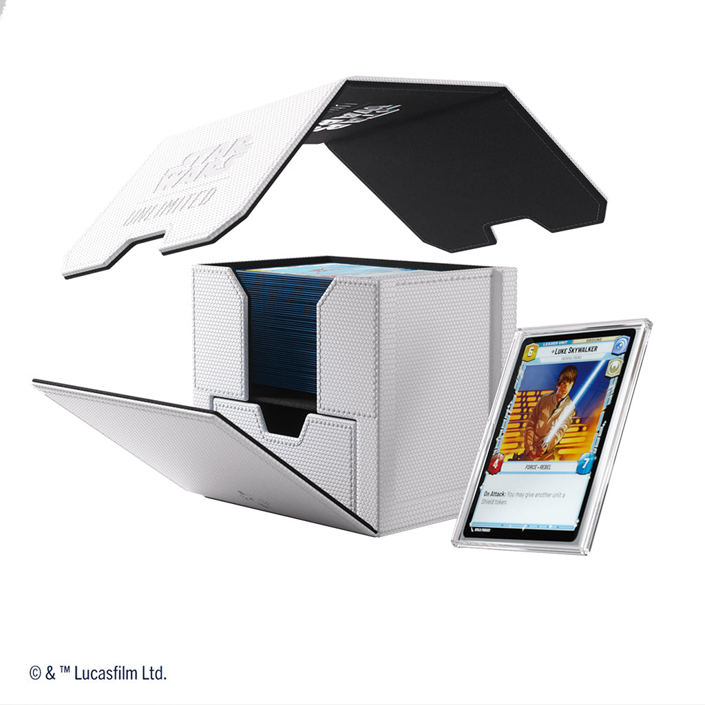 The Deck Pod, an officially licensed premium deck box, is specifically designed for the needs of Star Wars™: Unlimited players. UNIQUE FEATURE: The Deck Pod includes a Slide Card Case with additional UV protection for keeping the leader card. Due to the innovative placement of that card, the stored deck can be easily identified without opening the box. The Slide Card Case can also be detached and used during gameplay.