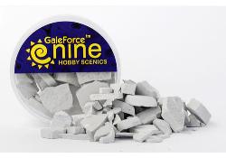 Concrete rubble creates incredibly realistic concrete because it’s just that: concrete. We use a super-fine powder, mix it, cast big sheets of the stuff, and then smash it up into manageable chunks. Our concrete rubble is tough enough to stand up to lots of games, but can be filed and detailed with normal hobby tools.