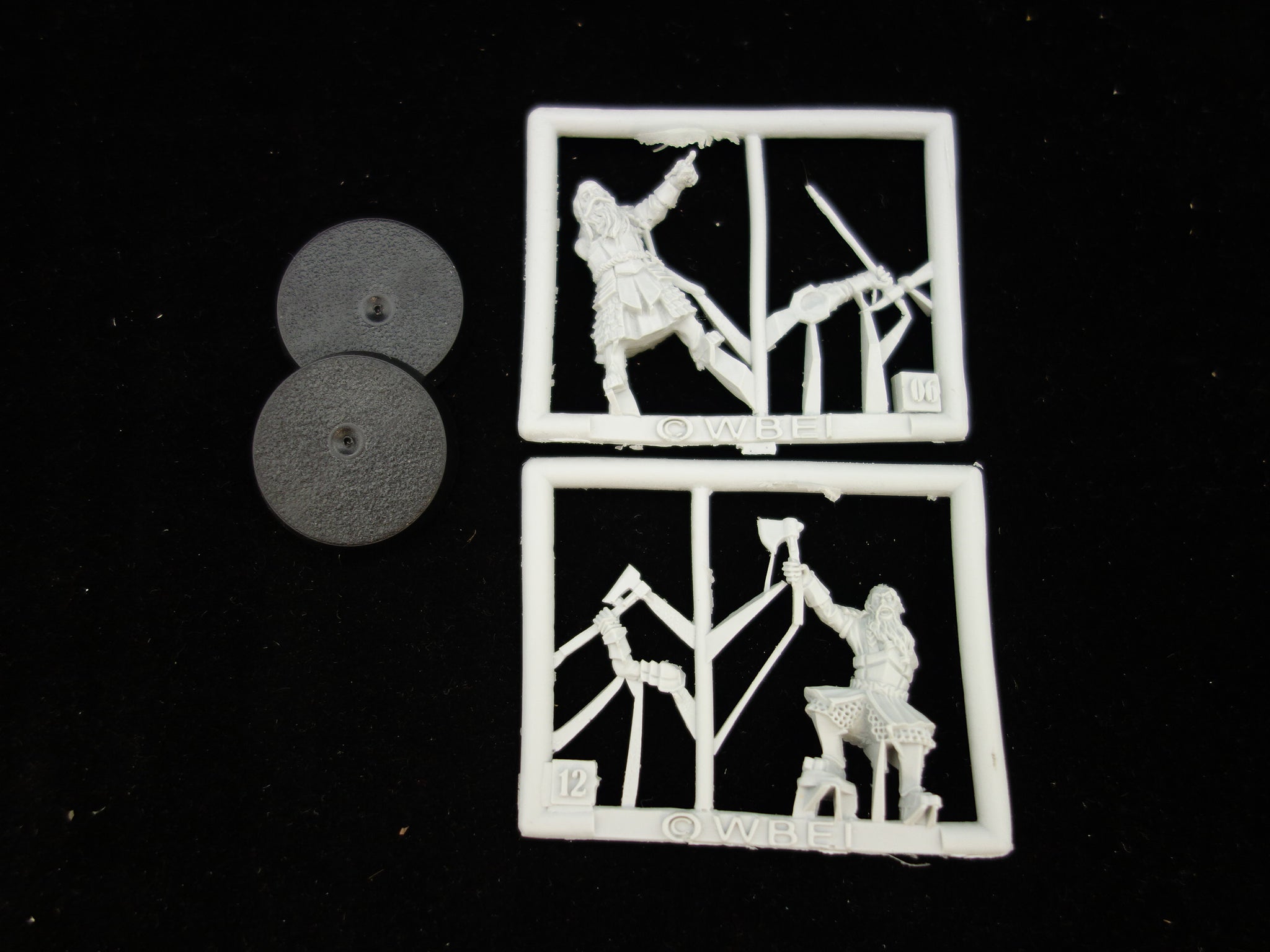 The kit is comprised of 4 resin components, with which you can construct a Captain of Erebor and a Grim Hammer Captain, supplied with 2x Citadel 25mm round bases. Rules for these miniatures can be found in the Armies of The Hobbit supplement.
