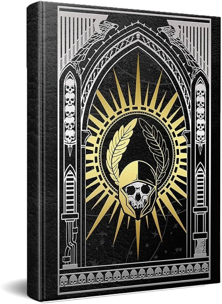 Introducing the Imperium Maledictum: Collector's Edition -- a stunning tome that demands pride of place on any bookshelf! This exclusive, limited edition volume is expertly crafted with a luxurious black faux leather cover, emblazoned with a striking gold and silver foiled icon that pays tribute to the legendary Lord Solar Macharius. The debossed starfield adds an extra subtle touch to the design, while the book block is perfected with gleaming gold gilt edges.